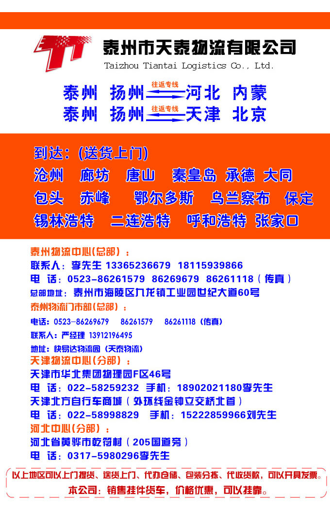 歡迎光臨泰州市天泰物流有限公司!